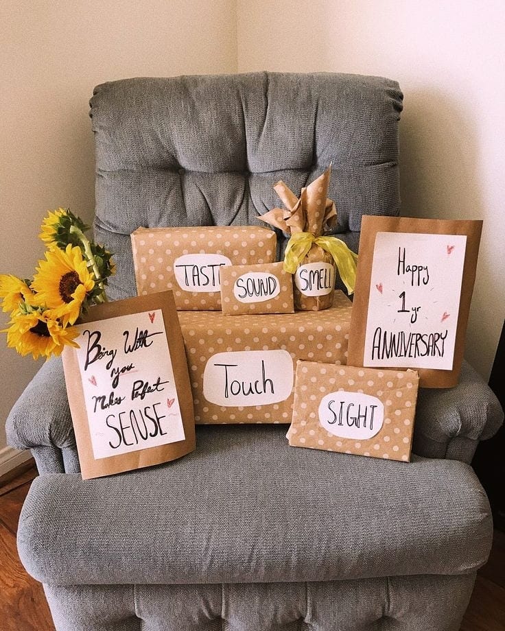 This romantic DIY gift idea engages all five senses — sight, sound, taste, touch, and smell — with a little gift for each one.
