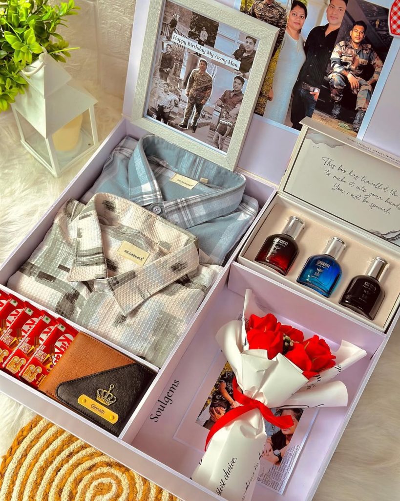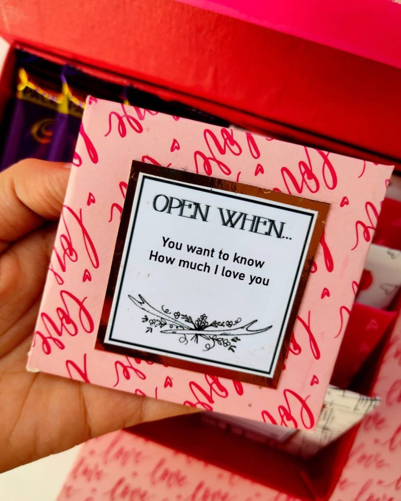 Imagine him opening this little box of happiness, discovering layer after layer of thoughtful surprises. His favorite candy tucked next to a tiny note saying, “This reminded me of you.” A cozy pair of socks for his cold feet. Maybe even a tiny photo of the two of you folded like a secret treasure map. It feels personal, fun, and totally made-for-him.