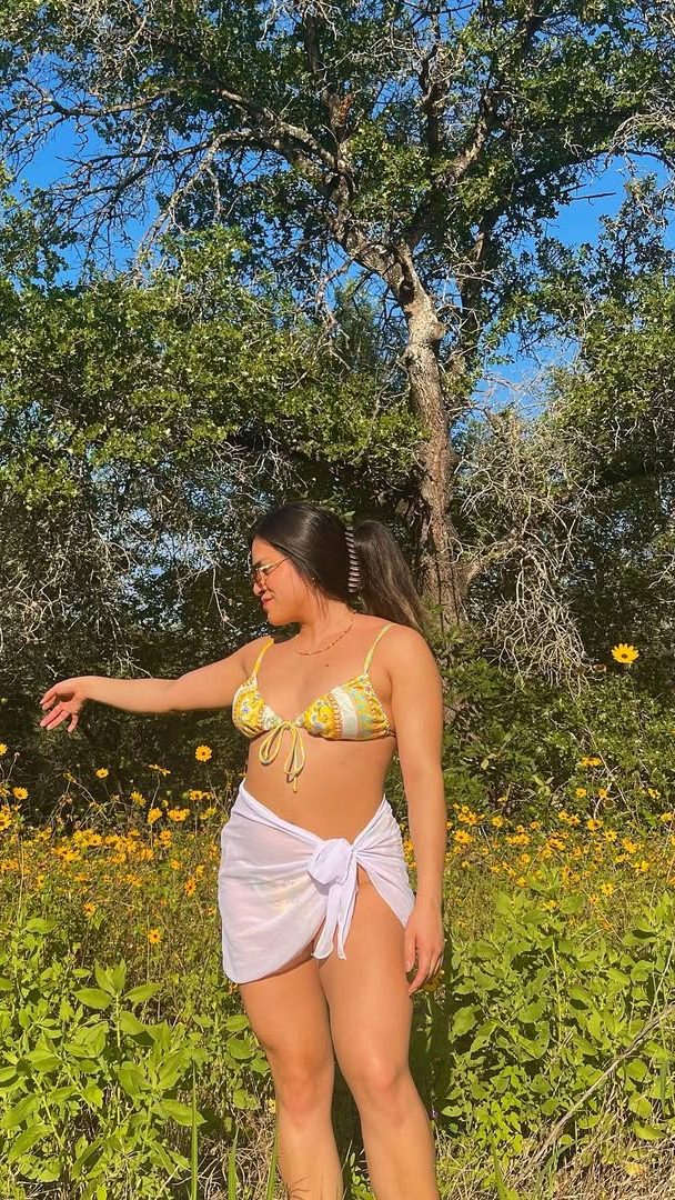 Your bright yellow bathing suit pops against turquoise waters in Maui. A breezy floral sarong wraps around your waist as you walk to grab another round of coconut drinks.