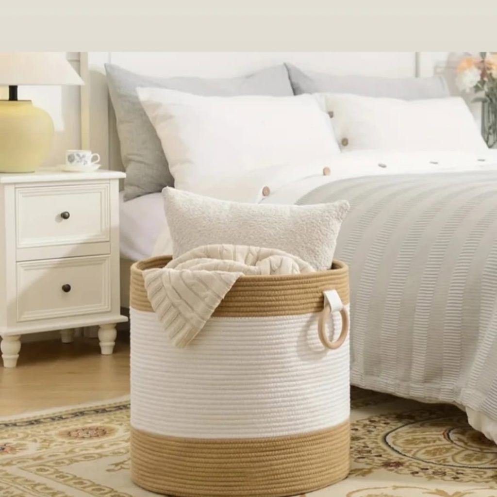 Picture this: A low woven basket filled with extra throws sits next to your bed, while a trio of circular woven wall hangings add texture above your dresser. Everything feels earthy and intentional.