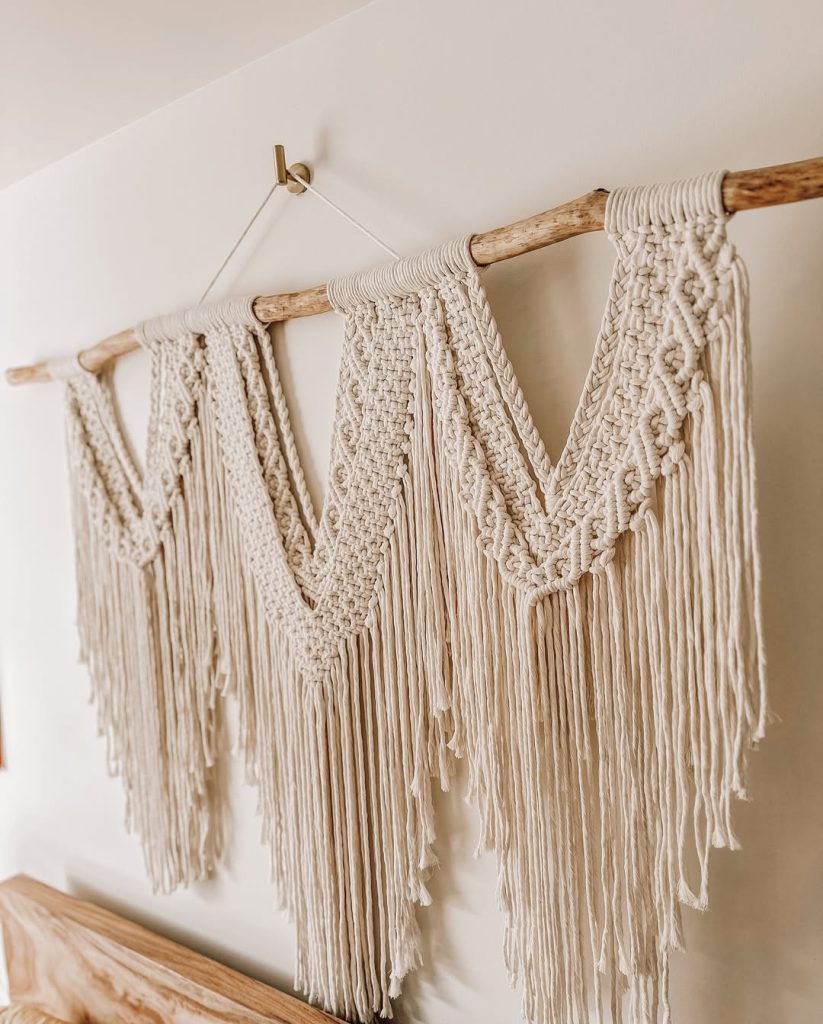 Picture this: Soft ivory macramé cascading from a driftwood rod, gently swaying over your bed, catching the golden glow from your fairy lights. It’s warm, it’s dreamy, it’s boho bliss.