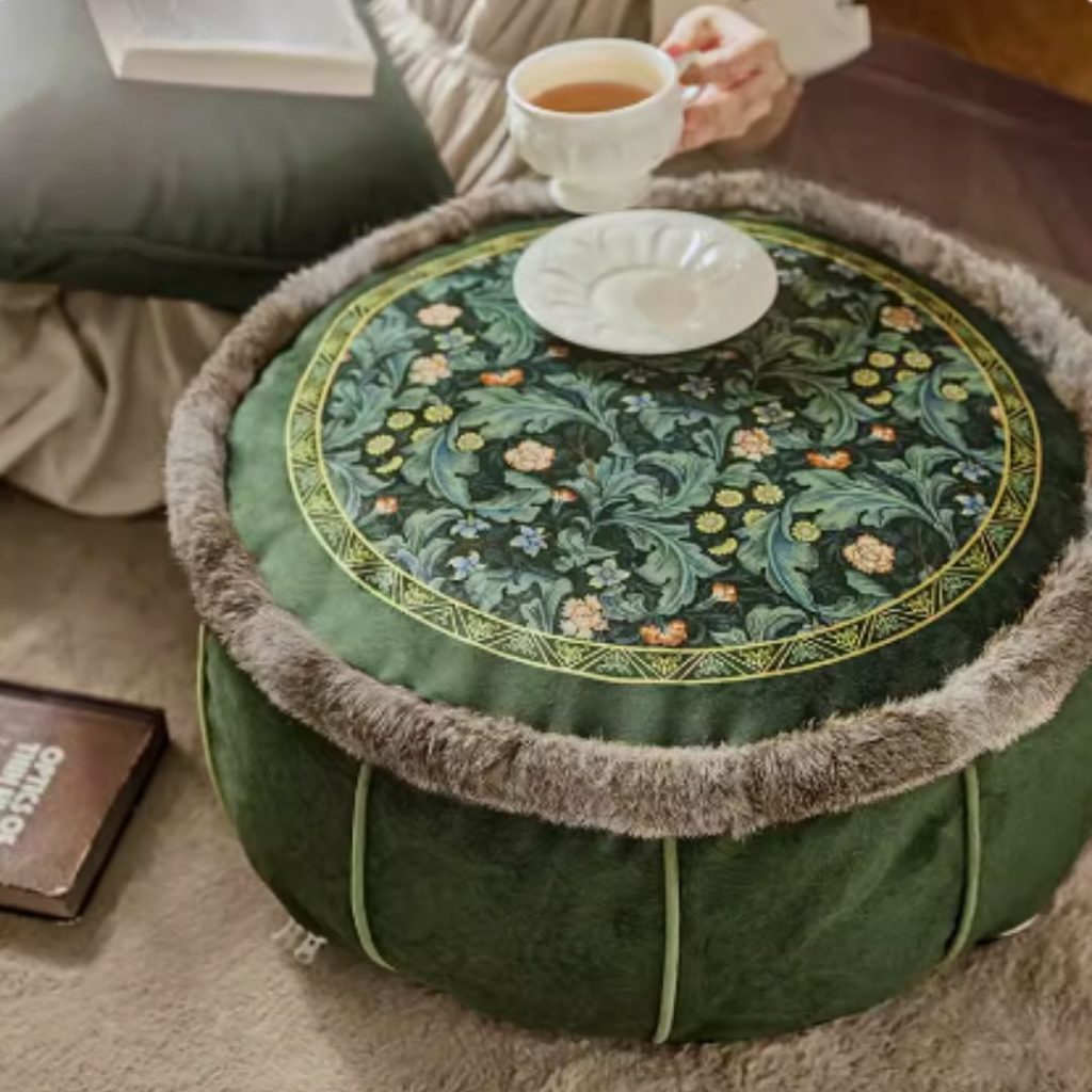 Picture this: You’re curled up on a mustard velvet floor cushion, sipping chai while flipping through an art book. Sunlight spills in beside a hanging plant. It’s calm and cozy, just how you like it.